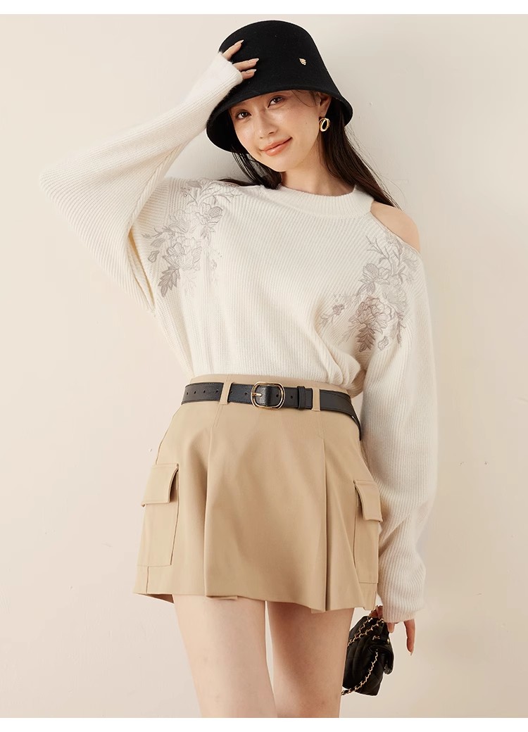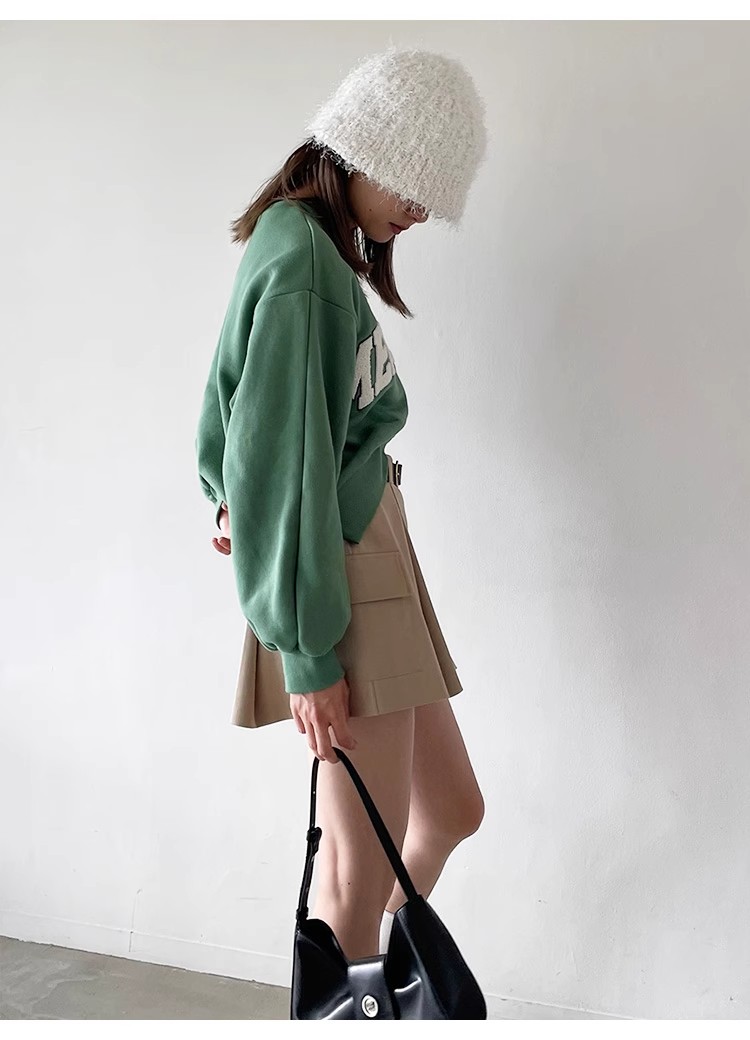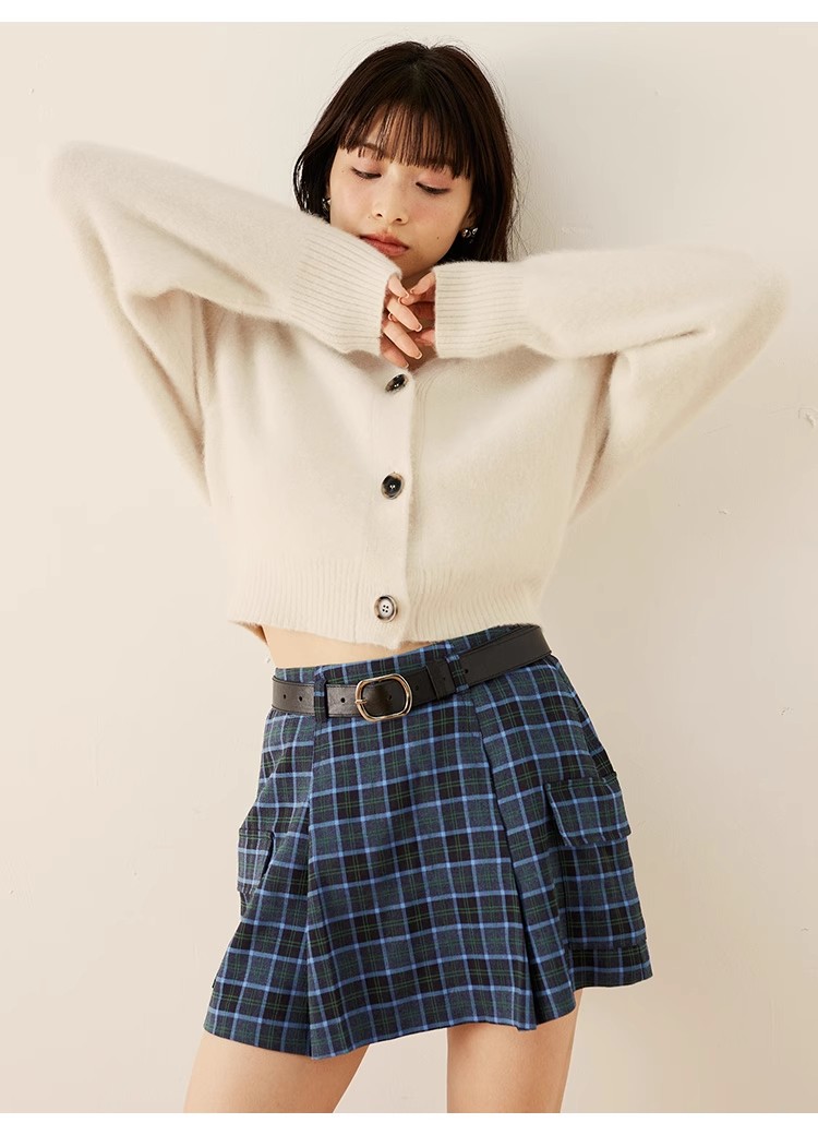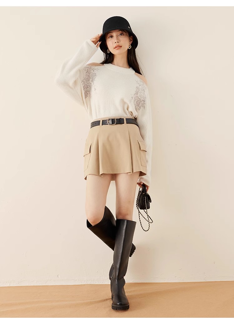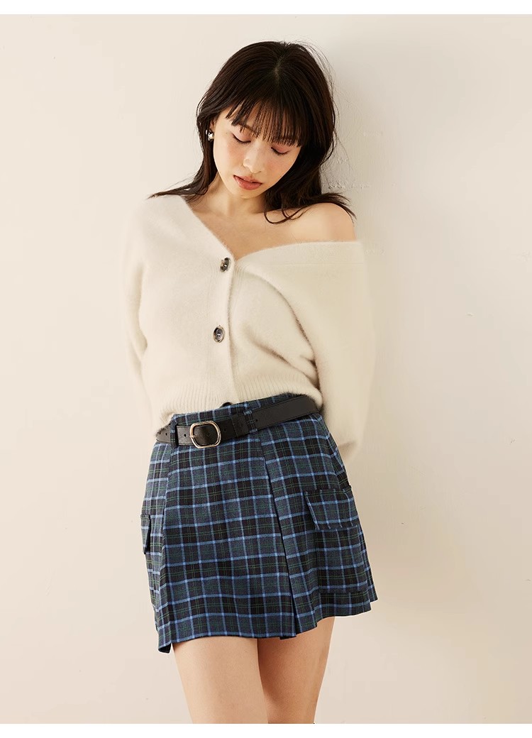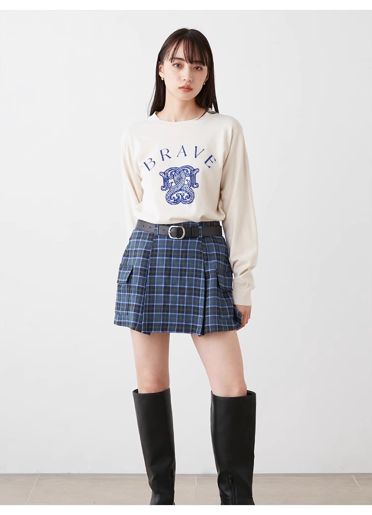 トレンド感のあるローウエストのミニスカショ。中がパンツになっているのでミニ丈も安心して着ていただけます。サイドのフラップポケットでカーゴ要素をプラスし、キャッチーに仕上げました。広がりすぎないボックスプリーツと、セットになったフェイクレザーベルトでキレを加えることで、グッと大人っぽく。ベルトは取り外して単品使いも可能です。ロゴニットなどを合わせたカジュアルなスタイリングが特におすすめです。