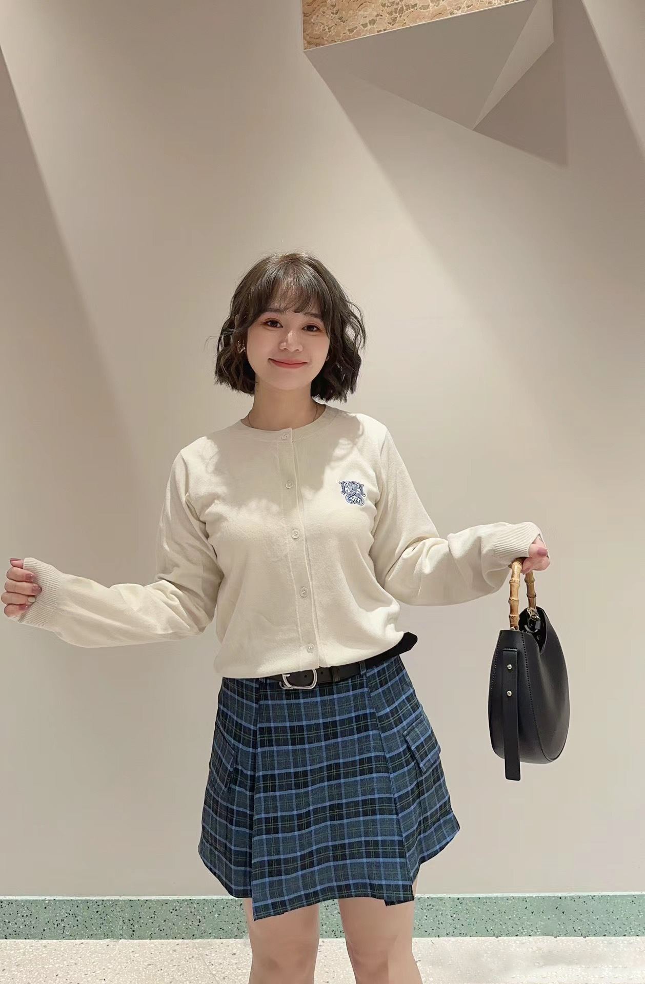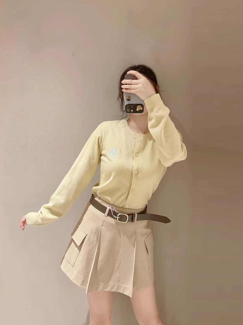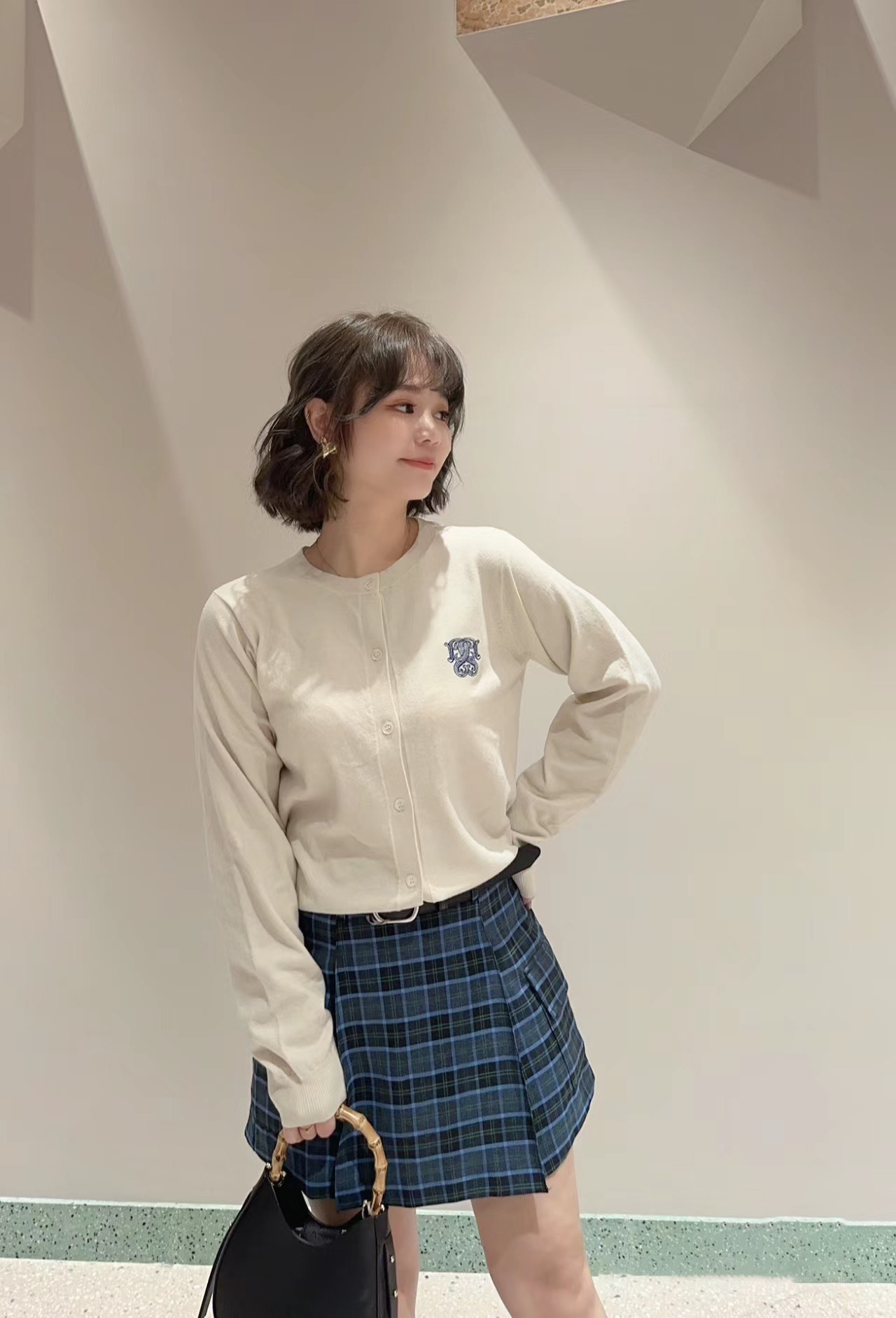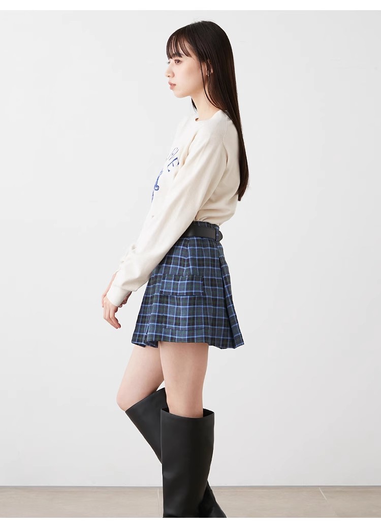 【ローウエストで新鮮に仕上げたボックスプリーツスカショ】