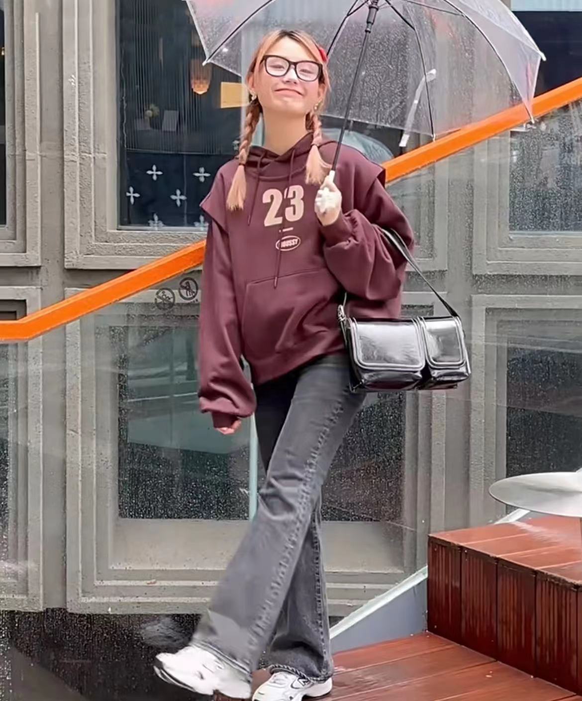 カレッジスタイル デタッチャブル・ツーピース・フーデッド・スウェットシャツ 160/80A