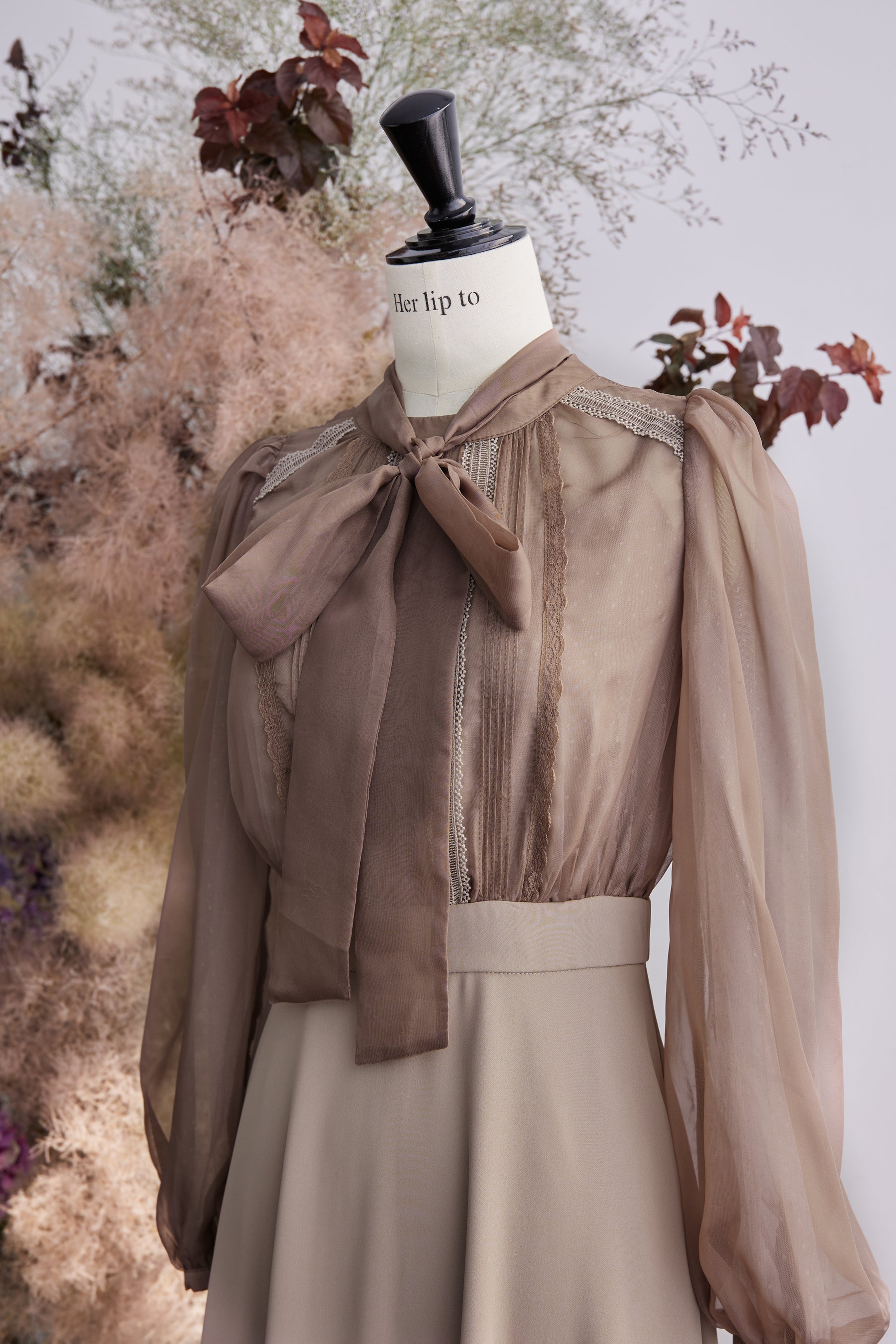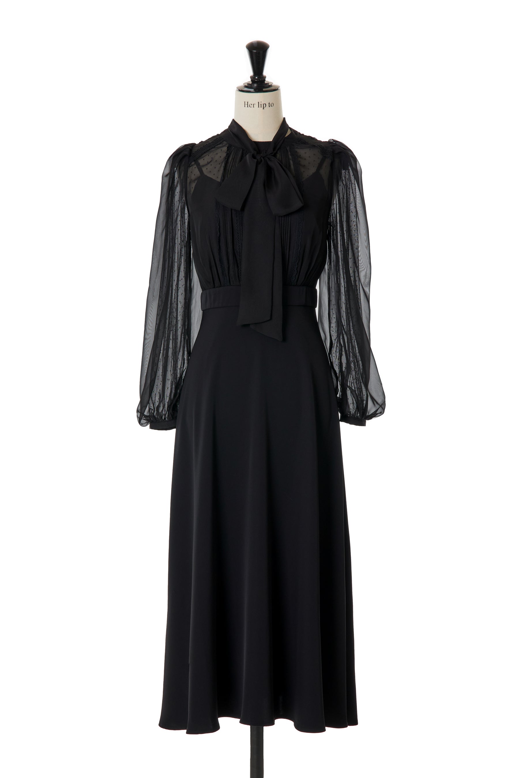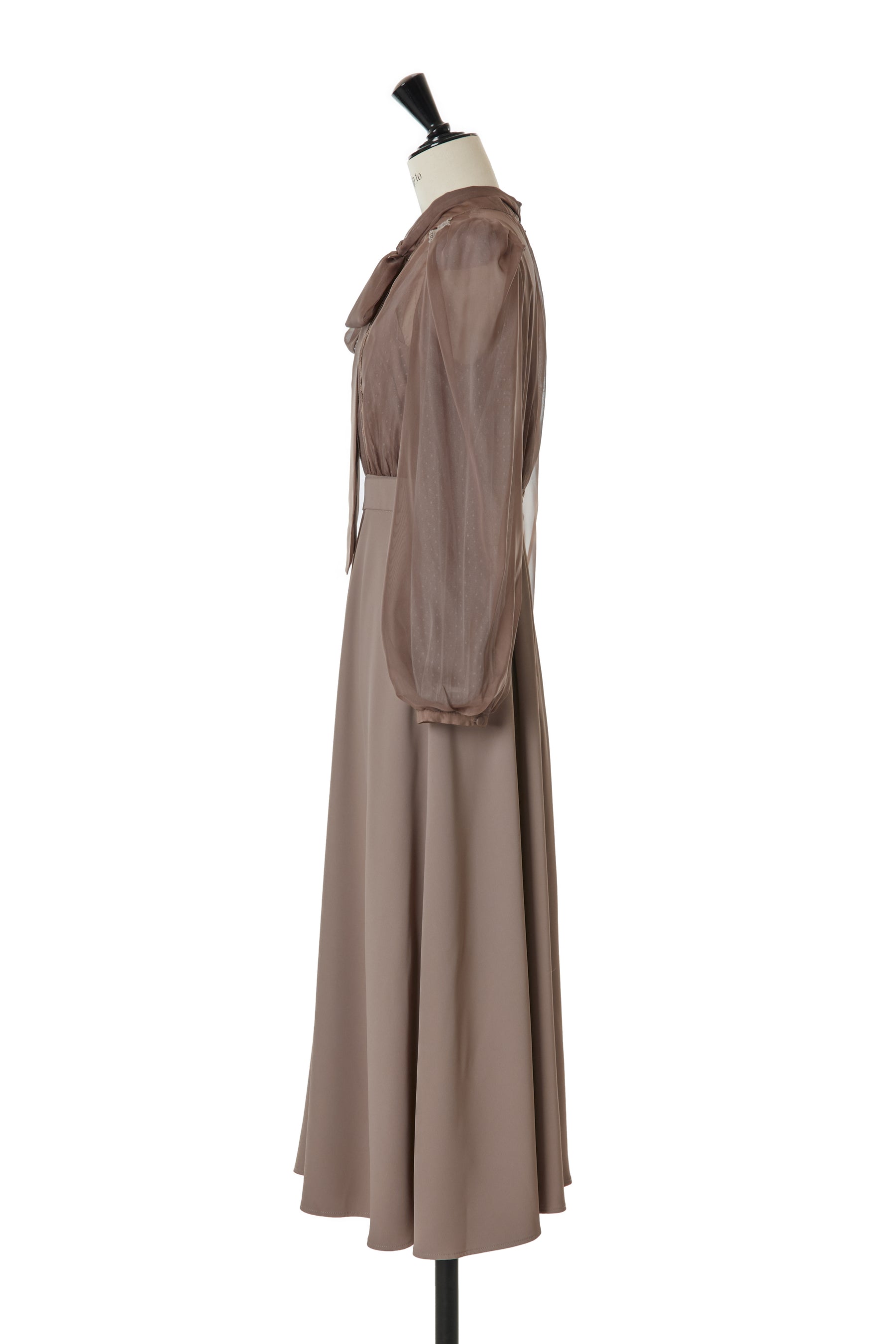 まるでブラウスを合わせているかのようなトップス部分は、繊細なドットチュールと光沢のある上品なチュールの異素材を重ねたデザイン。
