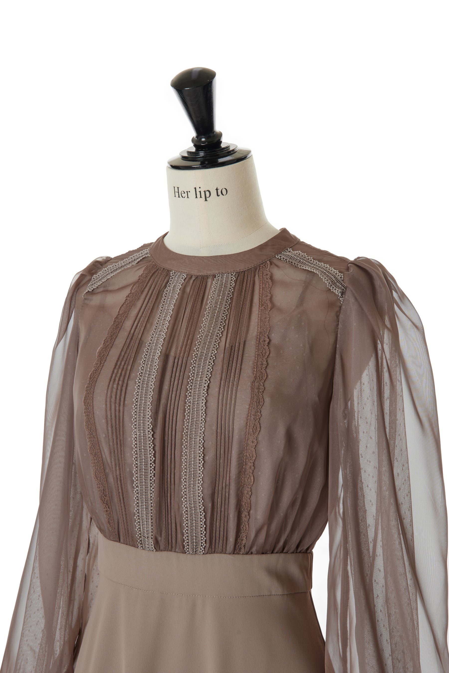 ピンタックと異なる梯子レースを施したディティールが上品な雰囲気を惹き立てています。