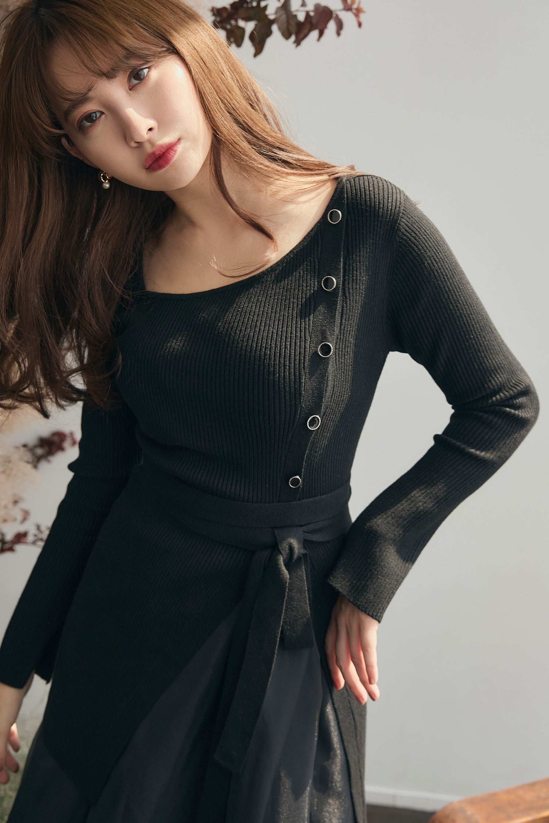 細身のリブニットが柔らかく体を包み込みます。