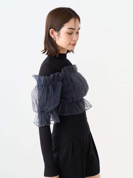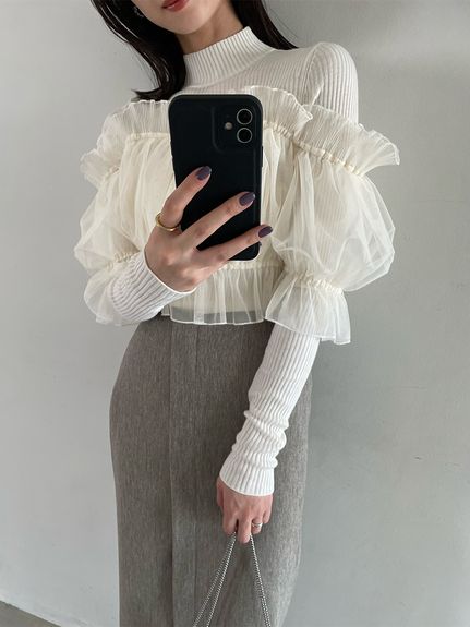 【チュールをドッキングした技ありニットなら1枚で簡単に着映え】