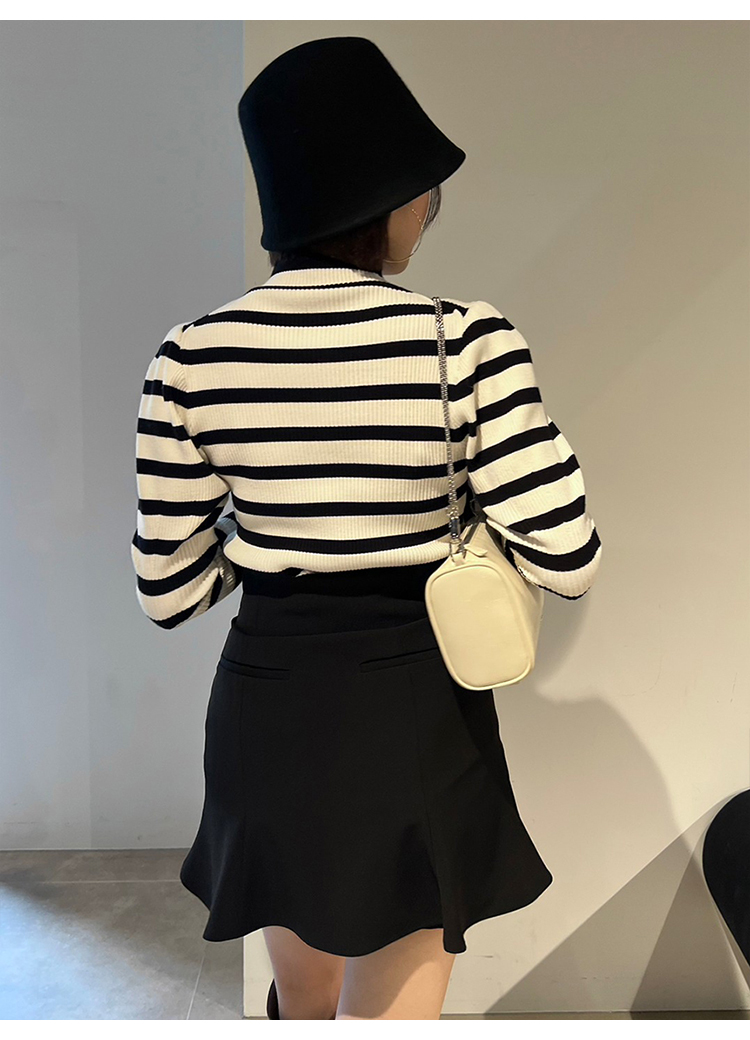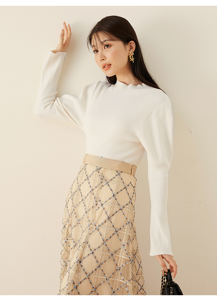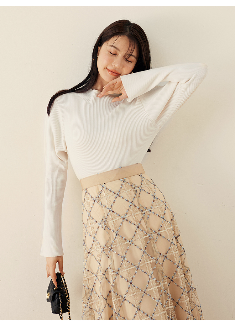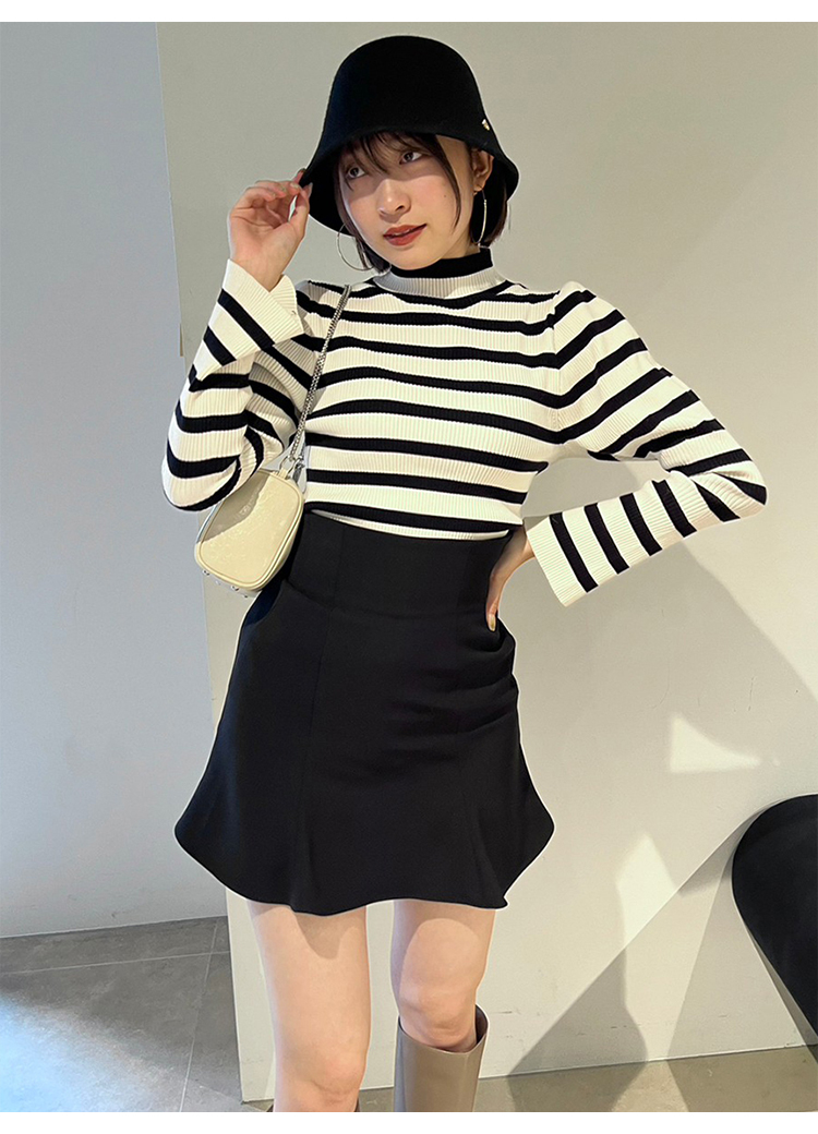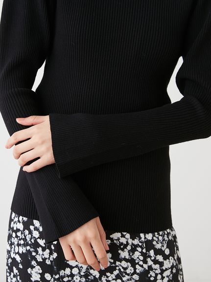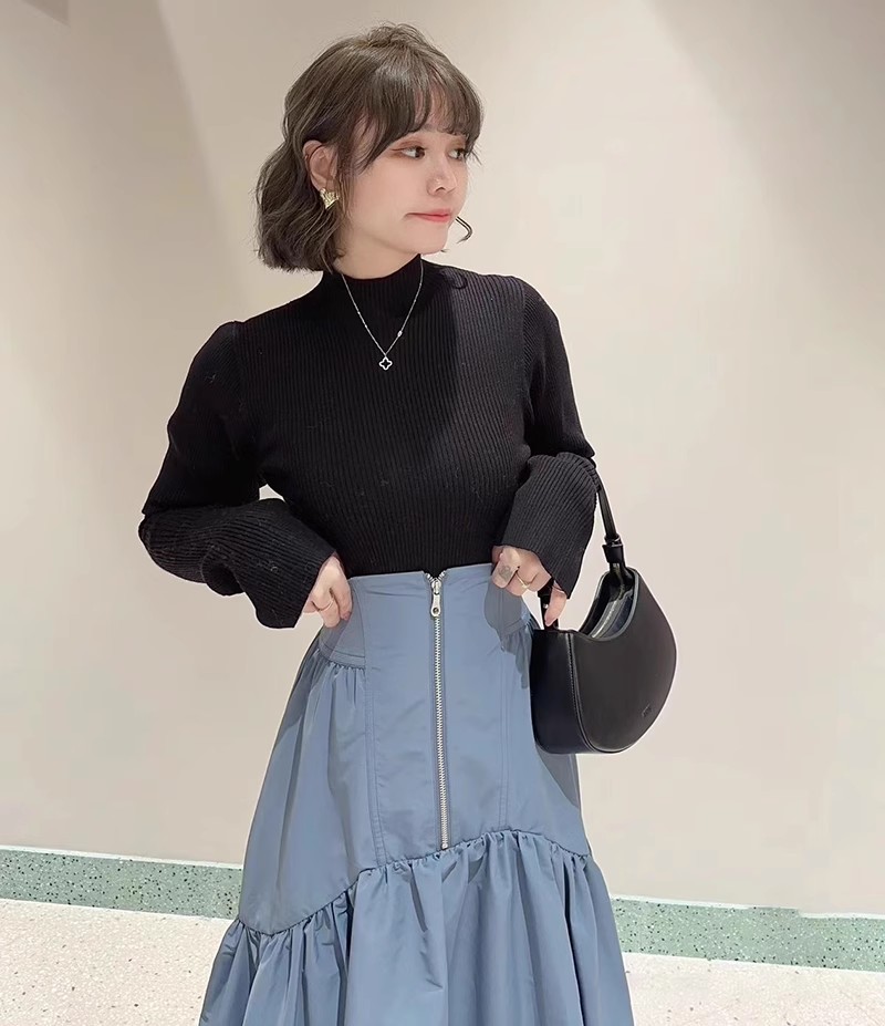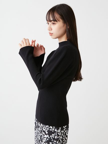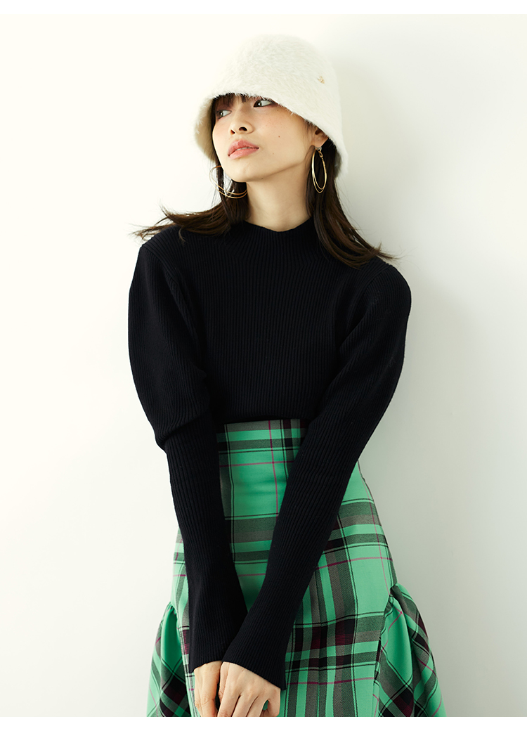 1枚持っておくと万能に使えるリブニット。今シーズンは、パフスリーブデザインで立体感をプラス。使いやすさはそのままに、モードなエッセンスを効かせました。ボディラインを拾いすぎない適度なコンパクトシルエットや、レイヤードがキマりやすいボトルネックなど、シンプルな中にもこだわりが詰まっています。一枚ではもちろん、チュールキャミソールやビスチェをレイヤードするコーディネートもおすすめです。