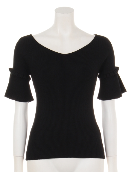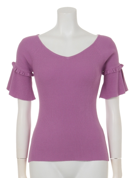 リブ編み地のテキスタイルで、上品顔に仕立てたニットトップス。フレアに広がる袖口が、コーディネートをレディに華やがせてくれます。さりげなくあしらったフリルの、SWEETなディテールワークも好評。
