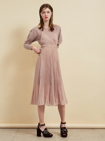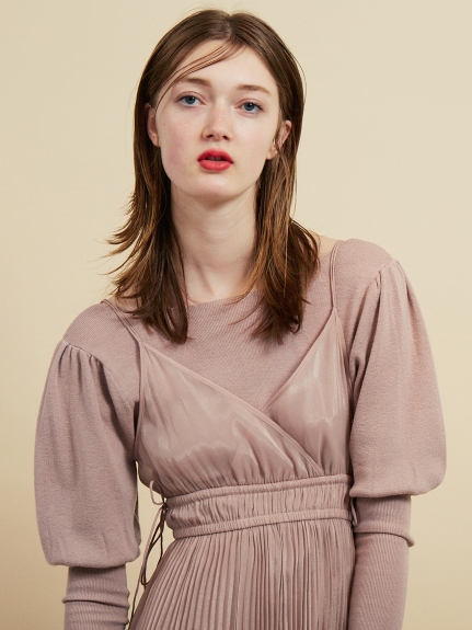 ふっくらとしたパフスリーブが印象的なニットワンピに、シアーなキャミワンピを重ねた嬉しいセットアイテム。