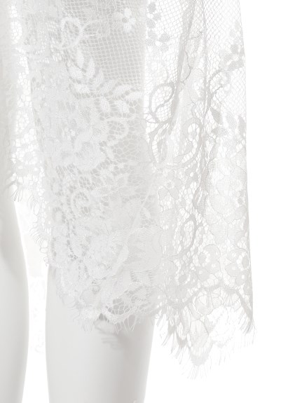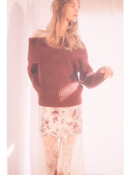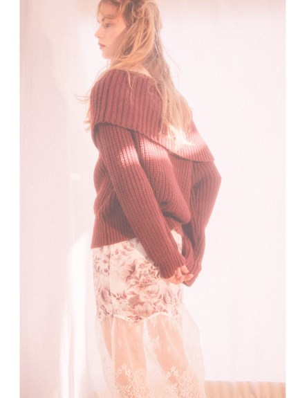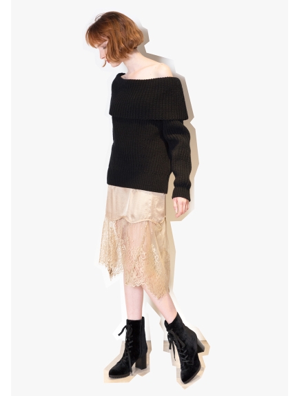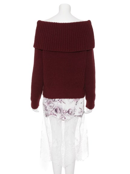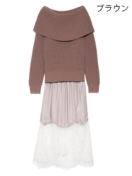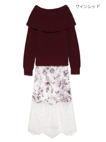 ざっくりニットと総レースのコンビネーションで仕上げた、ワンピース風セットアップです。