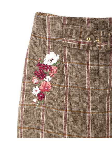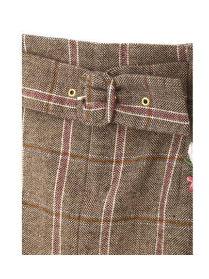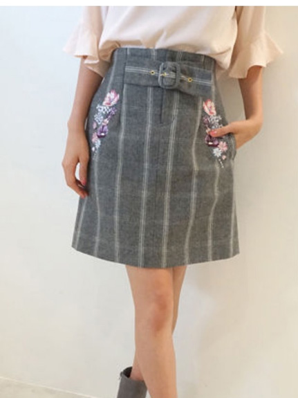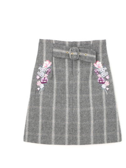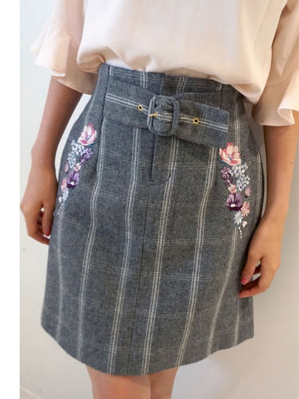 今年らしいチェック×刺しゅうがマッチした台形スカート!トレンドおじチェックにキレイなカラーブーケ刺しゅうが施された目を惹くデザイン。ハイウエストにベルト内蔵でスタイルアップを狙える膝上丈です。単品はもちろん、同シリーズのジャケットとセットアップも対応しています。※裏地・ポケ・後ろファスナー付き※商品の撮影はサンプルで行っている為、カラーやサイズ等に変更がある場合がございます。予めご了承ください。 ※人物着用の画像は、光の当たり具合や撮影環境により、色味が違って見える場合がございます。正しい色味は物画像または、トルソー画像の色味をご参照ください。