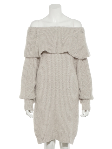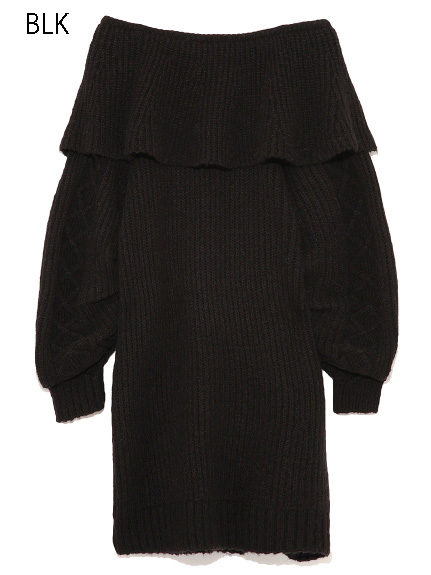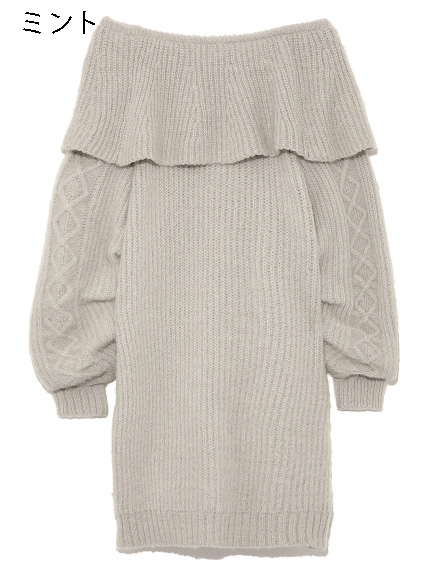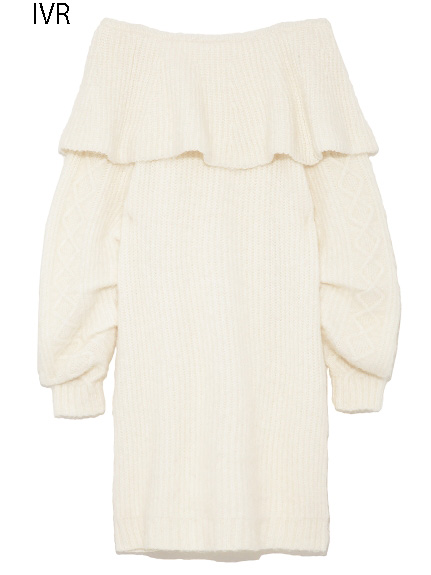 春夏から引き続きトレンドのオフィショルダーワンピースは、ふわふわのモヘア素材のニットで冬仕様にアップデート。
