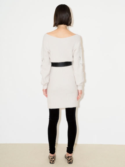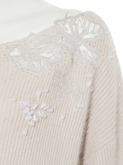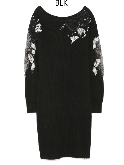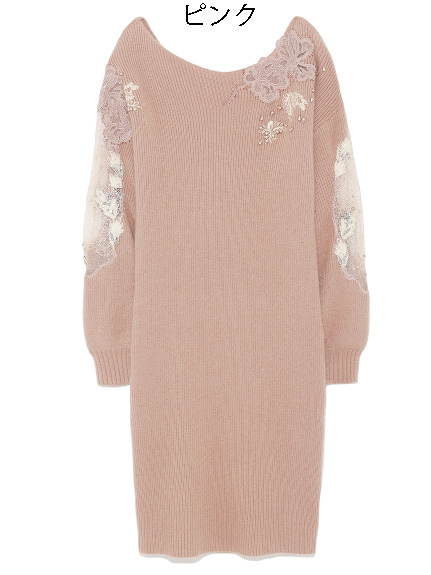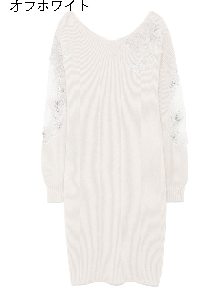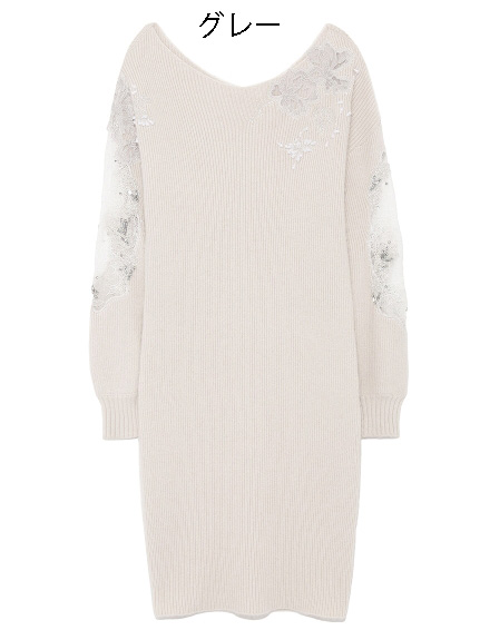 繊細な刺繍やレース、ビジューを贅沢に施した特別感のあるニットワンピース。