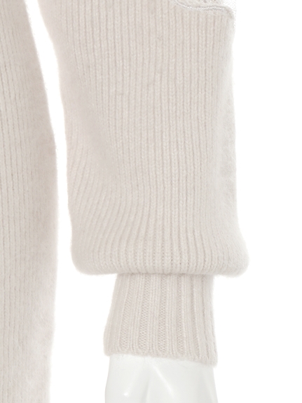 素材 本体:ナイロン47%、レーヨン28%、アンゴラ20%、羊毛5%/チュール部分・レース:ナイロン100%/刺しゅう部分:(コード糸)綿60%、ポリエステル40%(上糸・下糸)ポリエステル100%
