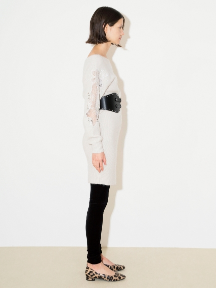 フラワーレースビジューニットワンピース