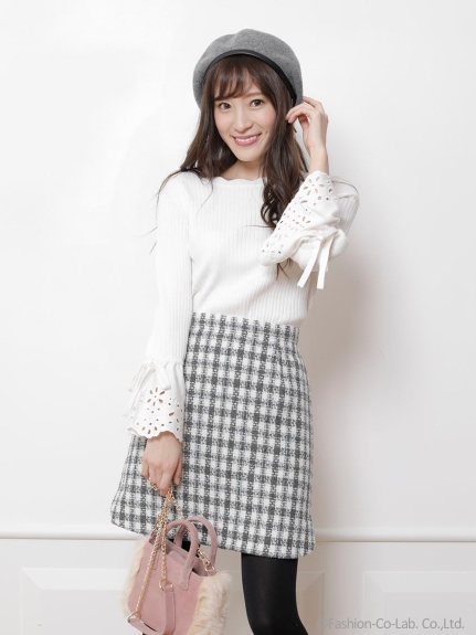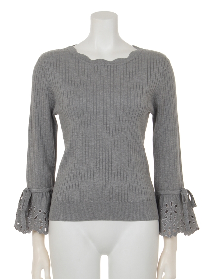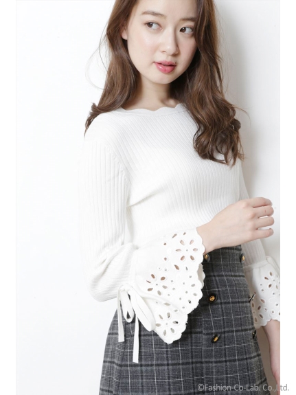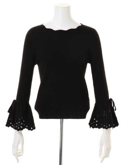 袖口がフレアに広がり、優雅なシルエットを描くリブニットトップス。さらに刺繍も施して、手元をレディに演出しています。添えたリボンにスカラップのラインなど、秘めた乙女心が目を覚ますSWEETなディテールワークもGOOD。 素材 本体:レーヨン70%、ポリエステル30%/刺繍糸:レーヨン100% サイズ表記 総丈 肩幅 袖丈 袖ぐり バスト F 54cm 34.5cm 48.5cm 40cm 69cm