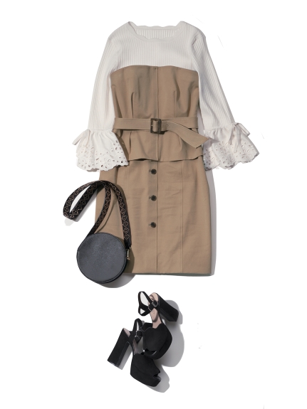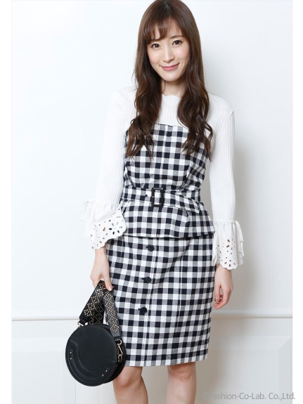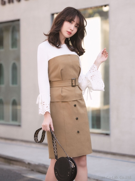 レースブロッキングニットワンピース