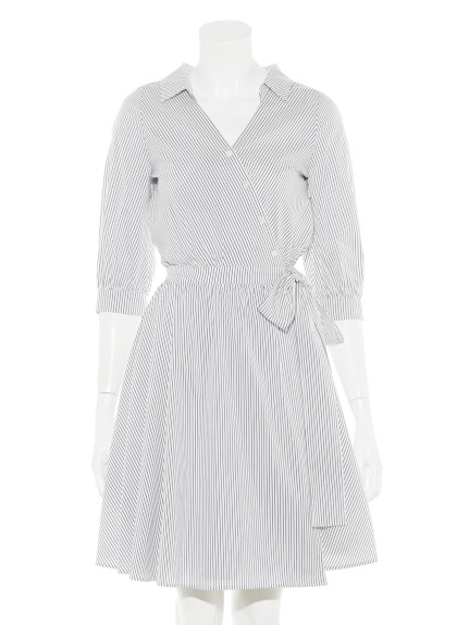 春一番に着こなしたいシャツワンピが到着。トップス部分はカシュクール風、スカート部分はラップ風にアレンジしているので、着るだけでおしゃれに決まります。ゴムを配したウエストラインが、メリハリのあるシルエット作りに貢献。ひざの隠れる着丈やきちんと感香るシャツ型は、大人らしい上品さを演出してくれます。