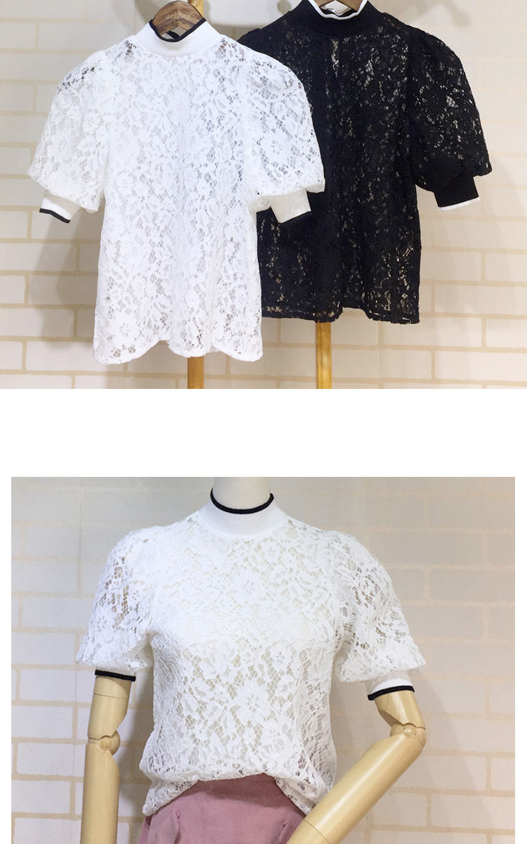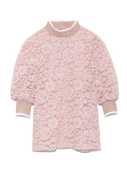 大ぶりのフラワーパターンが浮かぶ、上品レースを贅沢に使用したブラウス。ネックラインと袖口には、スポーティーな雰囲気香るリブニットを配して、アクセントに。