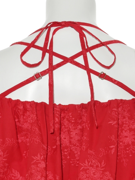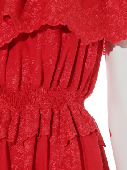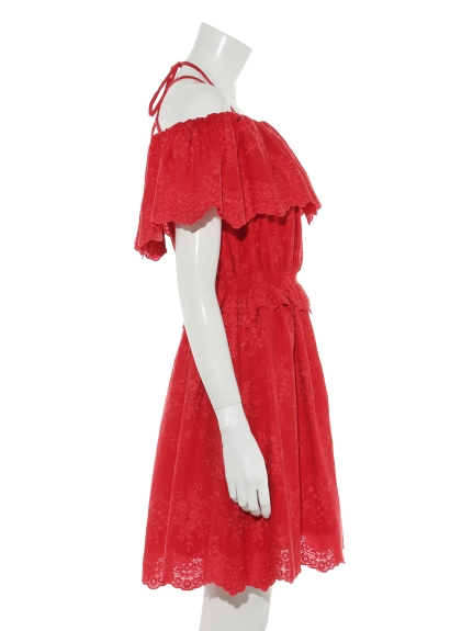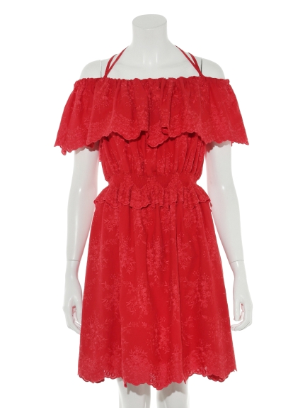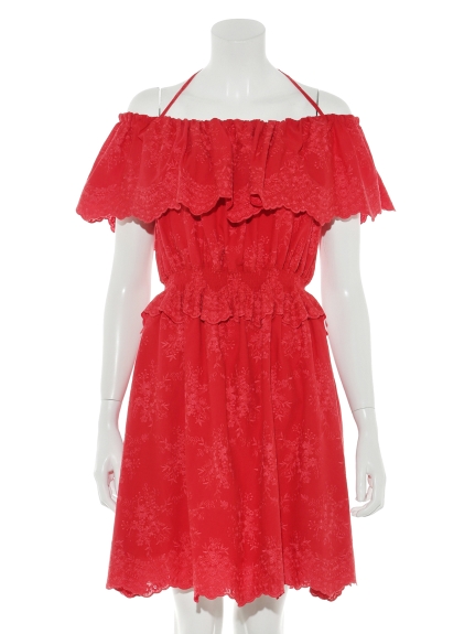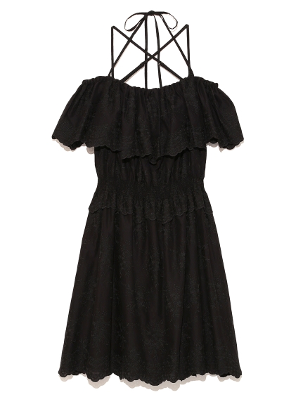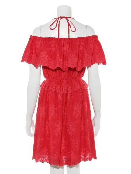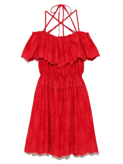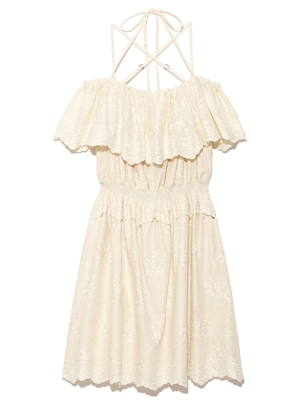 さらりと着ても表情豊かな、フラワー刺繍のワンピースが登場。ウエストにはギャザーをあしらい、裾にかけて広がるフレアが女性らしいシルエットを演出します。肩紐は取り外しが可能。オフショルダーとしてはもちろん、紐のアレンジでホルターネックのようにして着用したりと、着こなしの幅が広がる一着です。